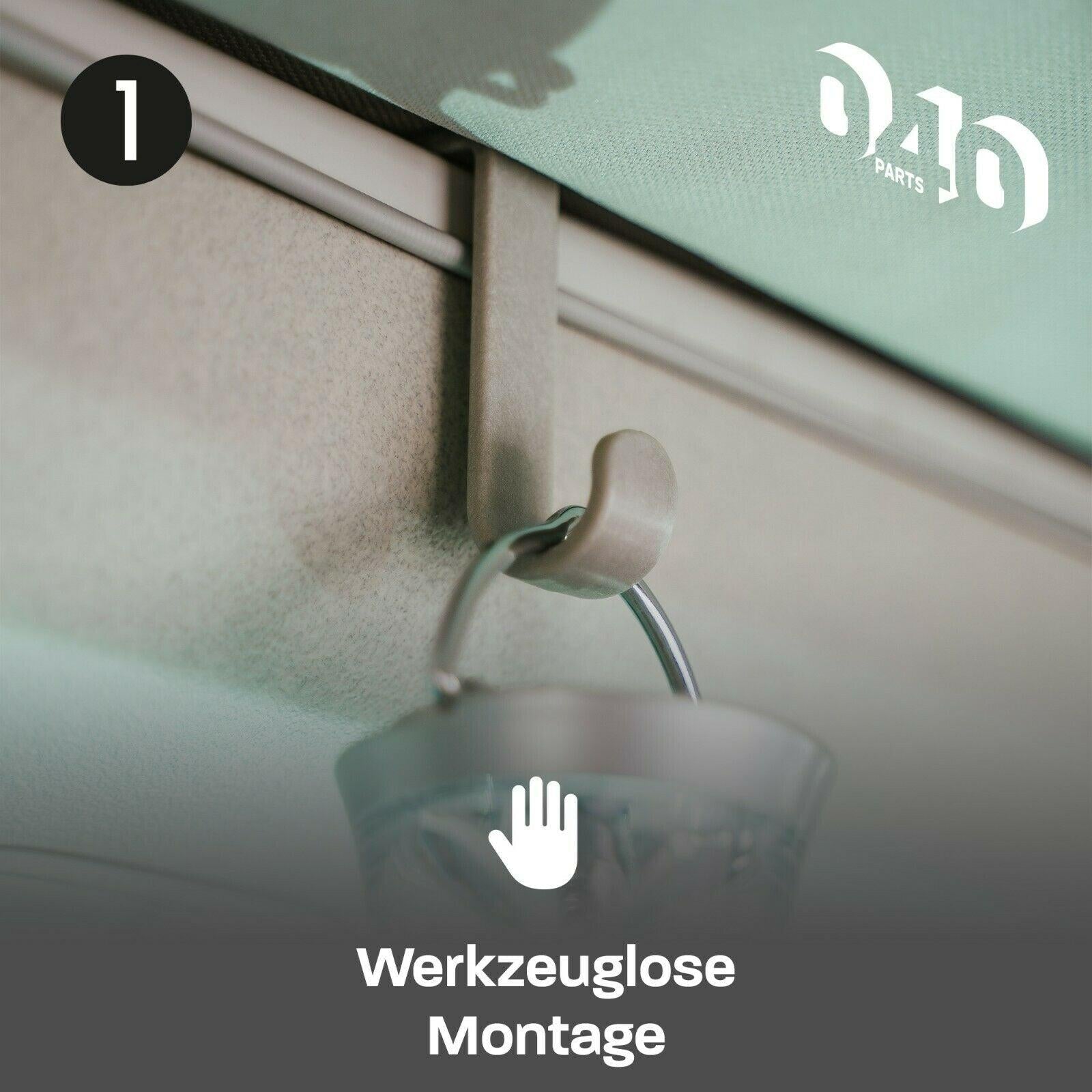 - Alle haken kunnen moeiteloos en zonder gereedschap op verschillende plaatsen binnen en buiten het voertuig worden bevestigd en weer verplaatst.