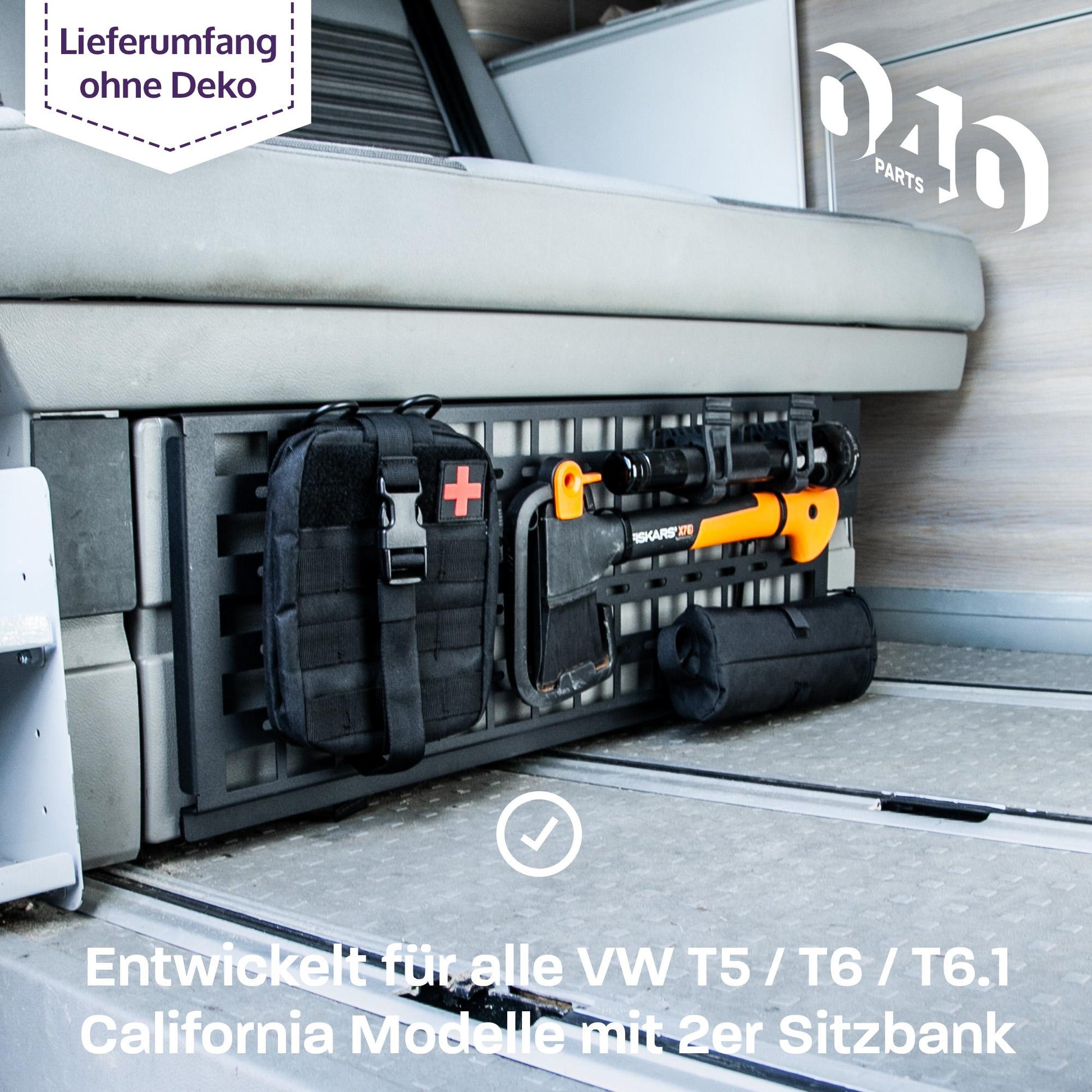 Du glaubst nicht, was unser einzigartiges Molle Board für deinen VW T5, T6 und T6.1 (mit Einzelsitzen) alles kann! Es ist die ultimative Lösung, um mehr Ordnung im Innenraum deines Campers zu schaffen. Mit diesem Board kannst du alles von Werkzeugen und Campingausrüstung bis hin zu alltäglichen Dingen sicher und platzsparend befestigen. Kein Platzmangel mehr im Van und an einer Stelle wo es niemanden stört.